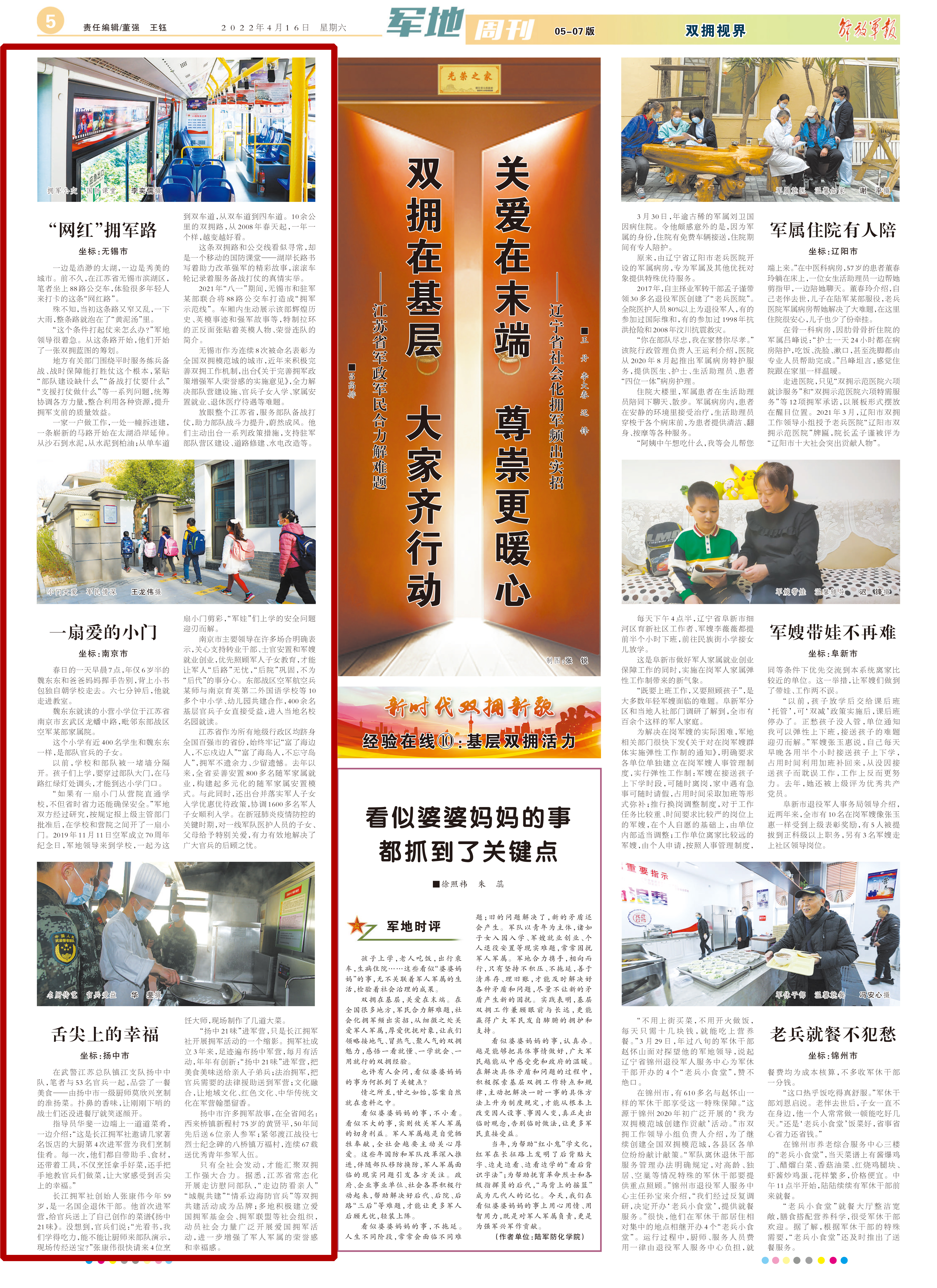 《解放军报》聚焦江苏军政军民合力解难题